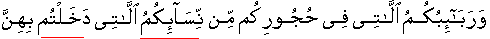 Moreover, those under your care and responsibility, living within your protection, the daughters from previous husband of your such wives with whom you have performed matrimonial relationship/sexual intercourse are amongst forbidden ones.