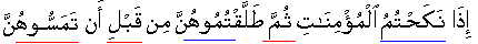 There is nothing contracting/condemning/blemish-worthy liable upon you people if you divorce [for compelling reasons] your just wed-wives with whom you have not yet established intimate matrimonial association. [Refer 2:236]